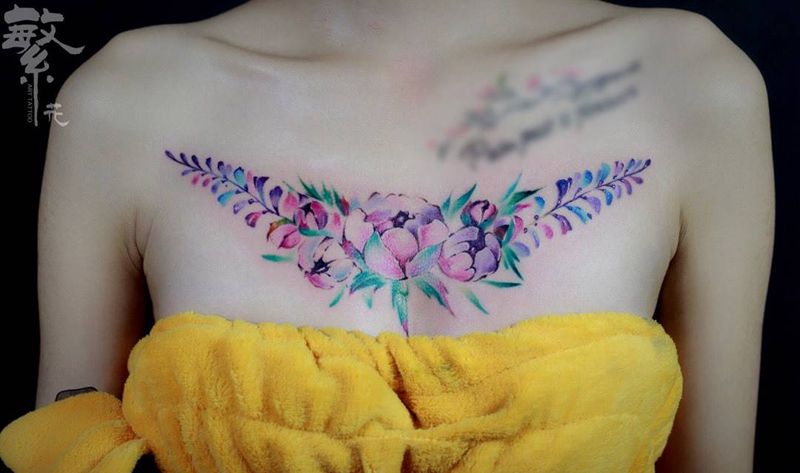 花胸纹身图片_手稿成品胸部欧美清新植物原创花胸纹身图案