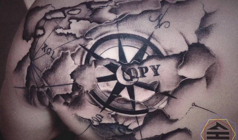 当前位置: 首页 >江苏省苏州市纹身店-苏州繁花艺术刺青纹身图案>地图指南针纹身图片_成品手稿肩部欧美几何字符图腾原创写实清新纹身图案