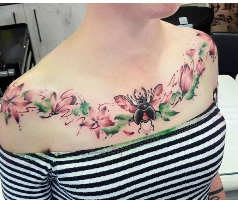 • 女性大花胸纹身_43张霸气漂亮的女性大花胸纹身图案作品