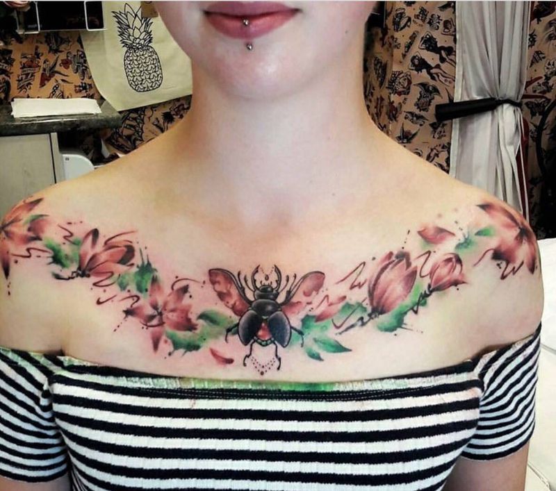 • 女性大花胸纹身_43张霸气漂亮的女性大花胸纹身图案作品