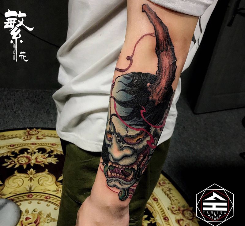 当前位置: 首页 >江苏省苏州市纹身店-苏州繁花艺术刺青纹身图案>般若纹身图片_成品手稿手臂传统写实鬼神原创般若纹身图案