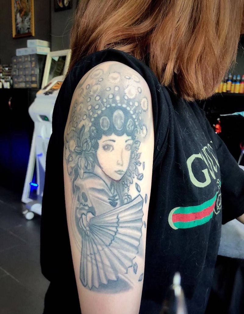 当前位置: 首页 >江苏省苏州市纹身店-苏州繁花艺术刺青纹身图案>纹家秀纹身图片_手臂新传统旧修改纹身图案