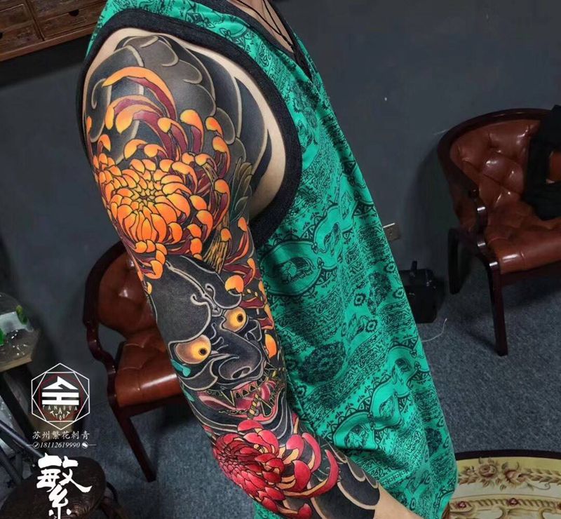 当前位置: 首页 >江苏省苏州市纹身店-苏州繁花艺术刺青纹身图案>老传统花臂纹身图片_成品手稿手臂传统人物植物原创花臂纹身图案