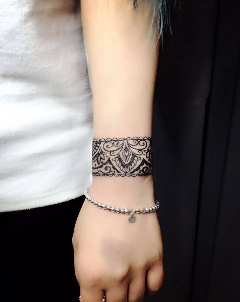 手环纹身图片_成品手臂腿部传统清新图腾字符原创纹身图案