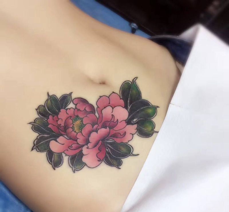 • 时尚性感的腹部莲花纹身图案