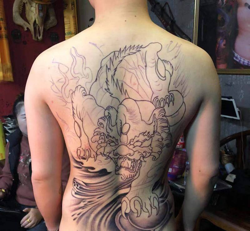 • 黑灰满背纹身图案