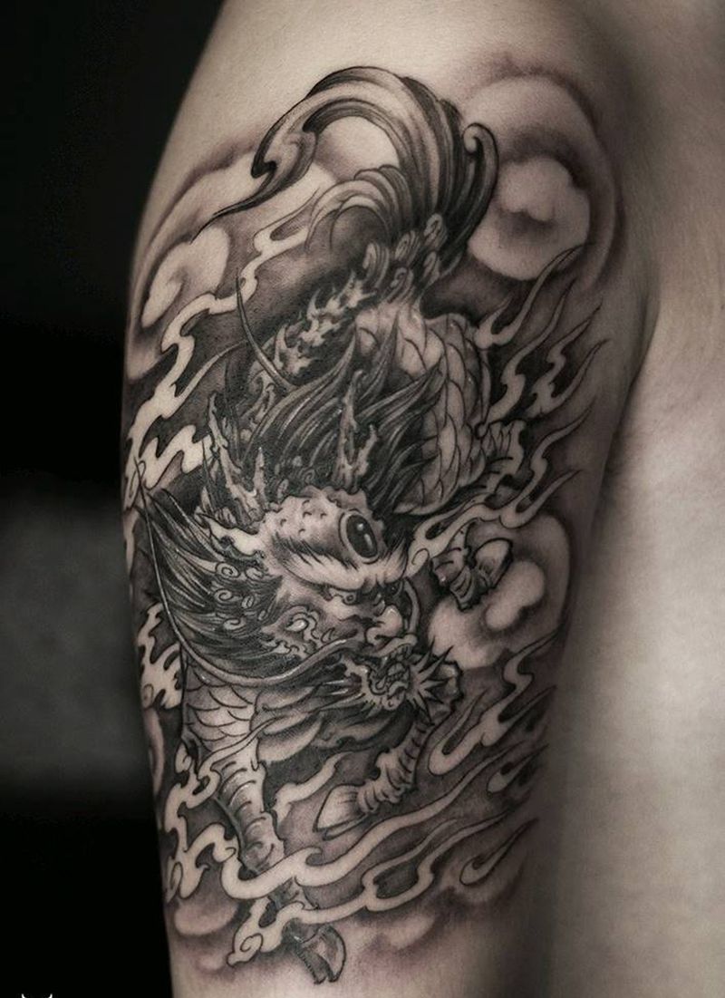 黑灰满背纹身图案