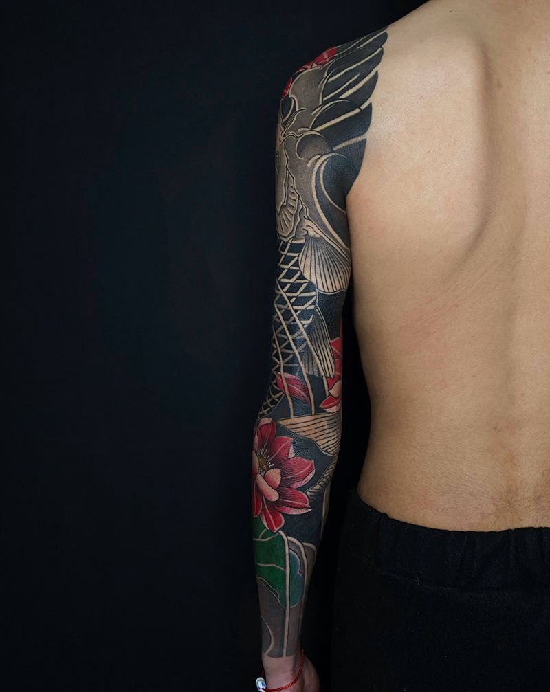 当前位置: 首页 >江苏省苏州市纹身店-谛酉刺青纹身图案>传统花臂鱼纹身图片_手臂肩部老传统新传统纹身图案