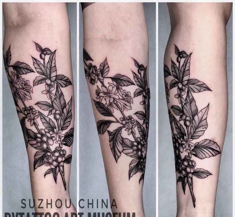 素花纹身图片_手臂水彩水墨纹身图案