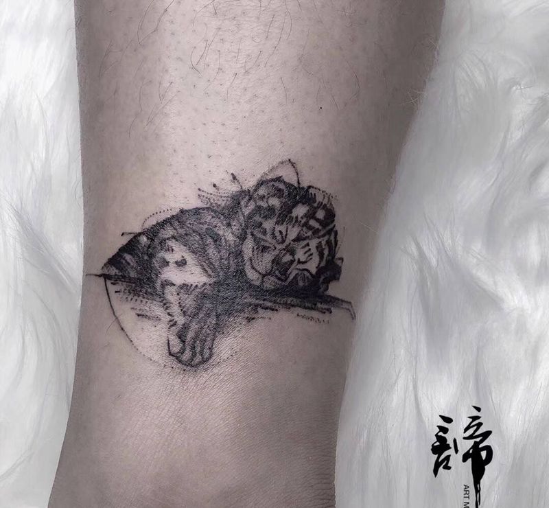 • T网红王老大花腿龙纹身图片_腿部新传统纹身图案
