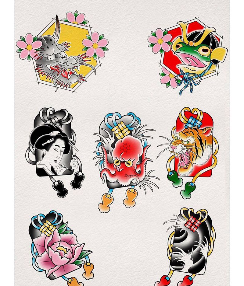 一组9张般若纹身手