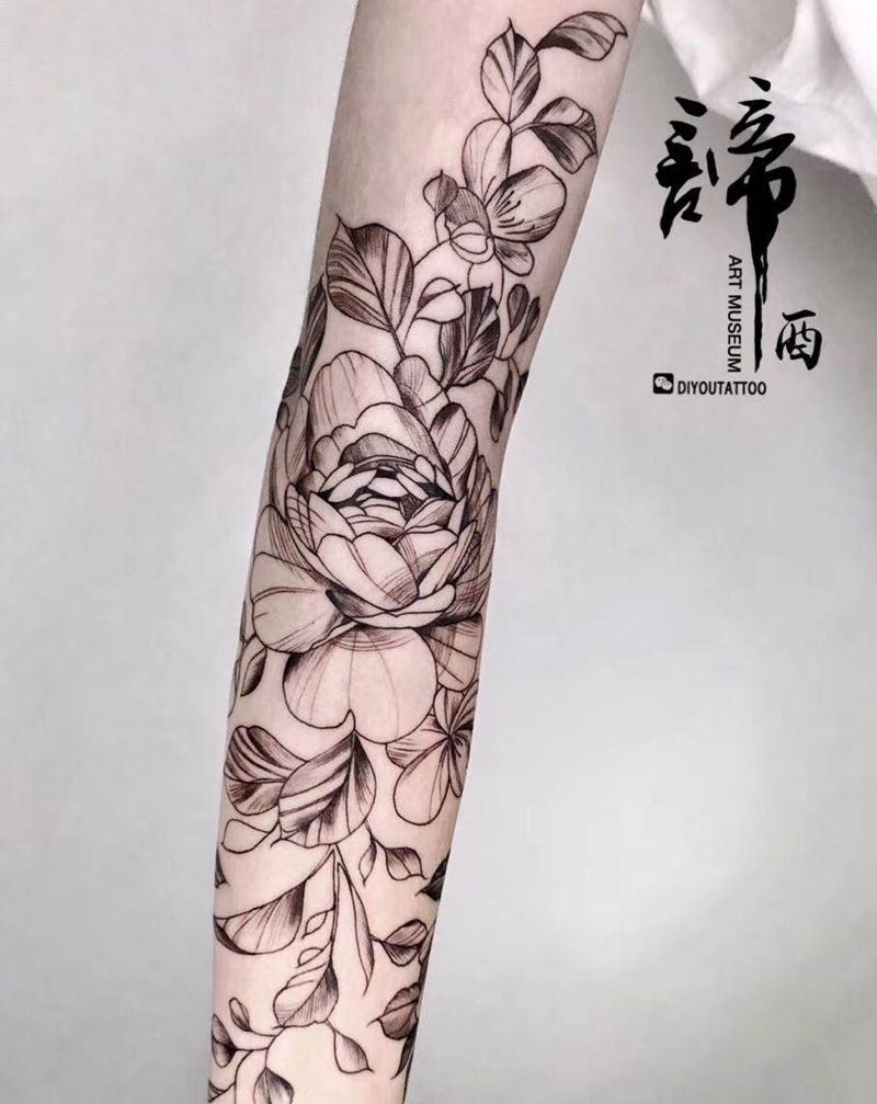 仙气飘飘 素花纹身图片_手臂点刺图腾纹身图案