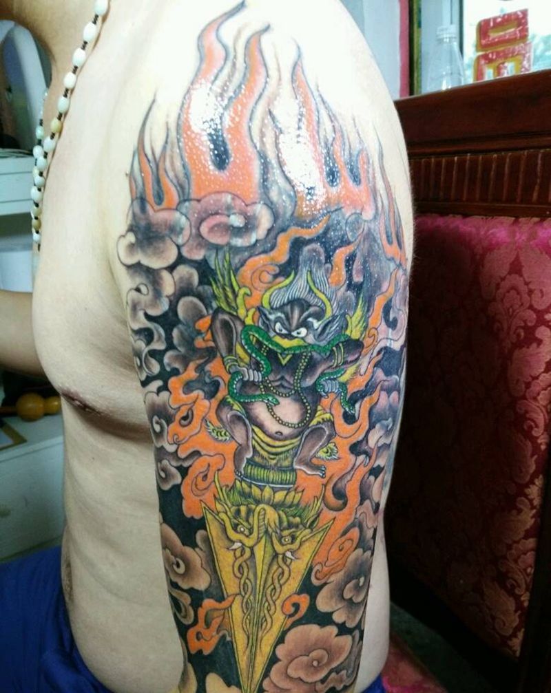 当前位置: 首页 >江苏省苏州市纹身店-苏州景山刺青纹身图案>降魔杆盖旧纹身纹身图片