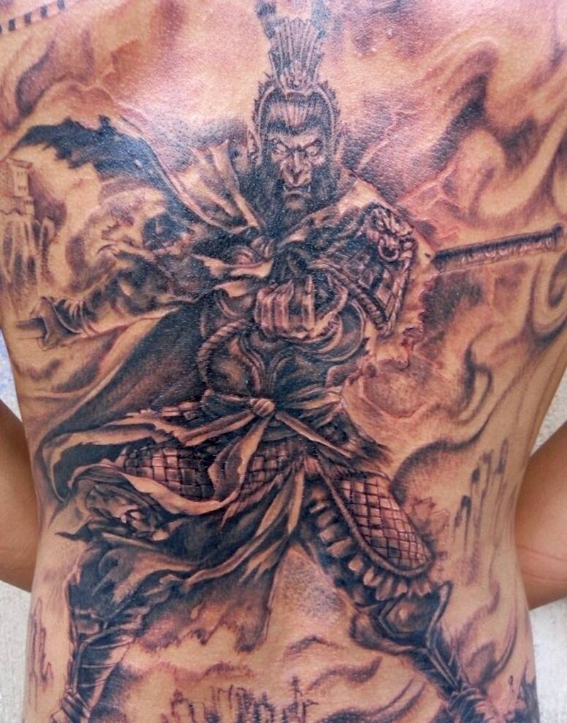 满背大圣纹身图片_背部传统宗教成品纹身图案