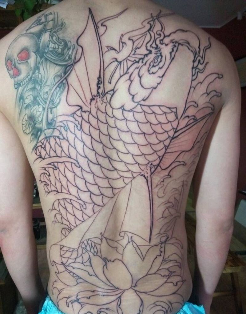 满背鲤鱼纹身图片_背部传统原创成品纹身图案