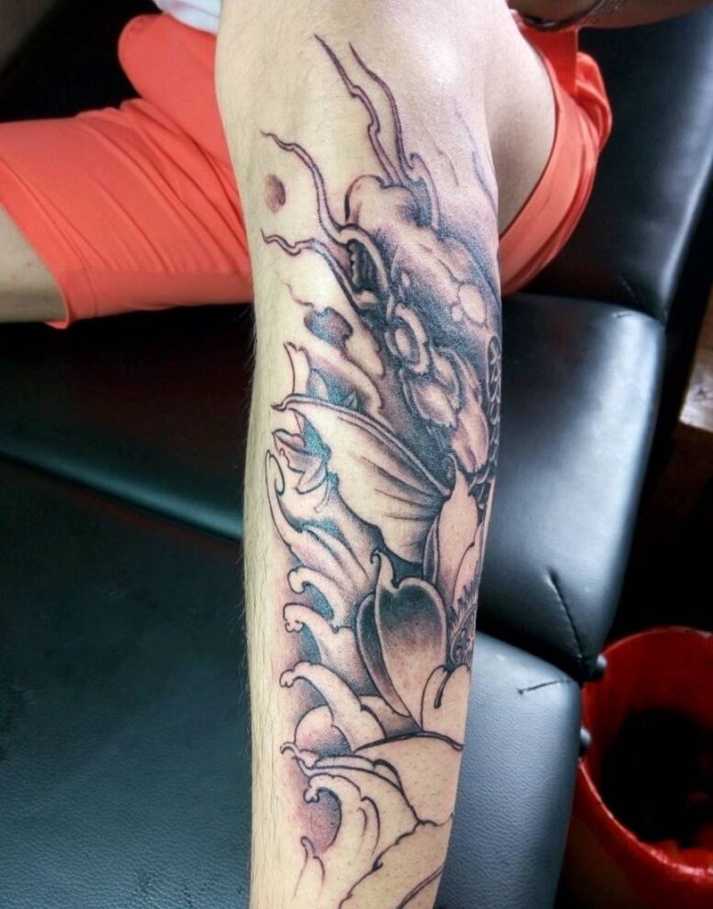 当前位置: 首页 >江苏省苏州市纹身店-鬼舞刺青·旗舰店纹身图案>小腿鲤鱼纹身图片_腿部传统动物成品纹身图案