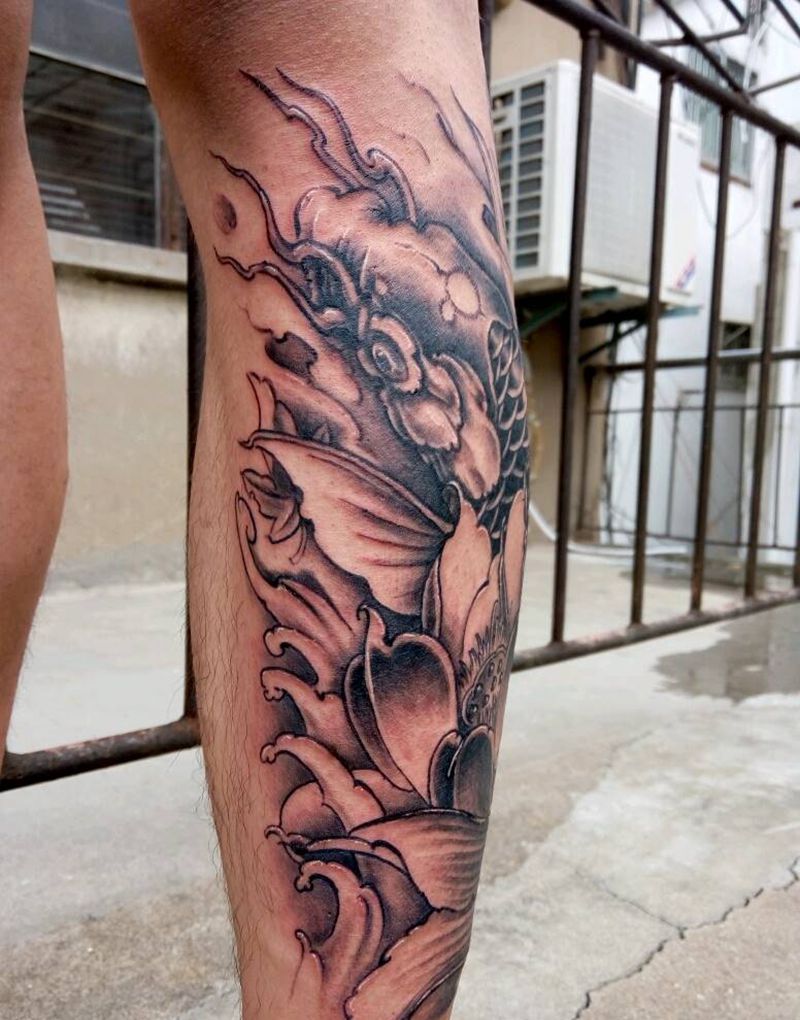 当前位置: 首页 >江苏省苏州市纹身店-鬼舞刺青·旗舰店纹身图案>小腿鲤鱼纹身图片_腿部传统动物成品纹身图案