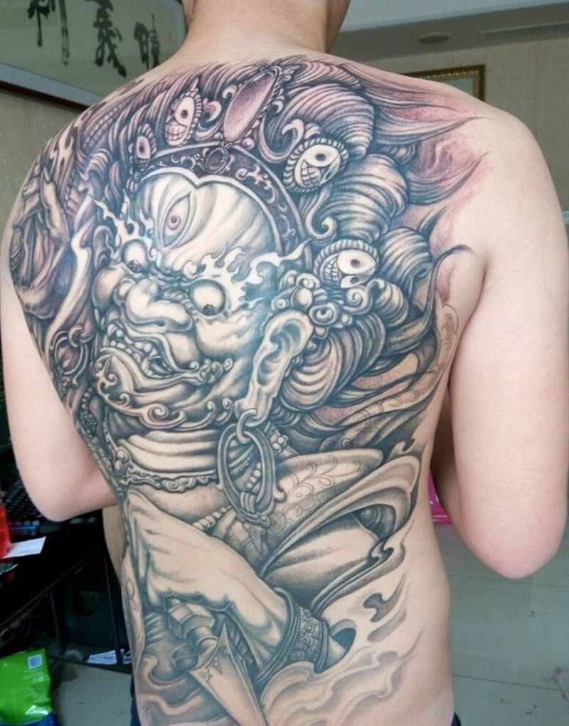 大黑天纹身图片_背部传统鬼神成品纹身图案