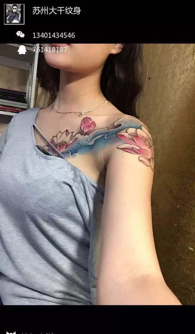 • 女性大花胸纹身_43张霸气漂亮的女性大花胸纹身图案作品