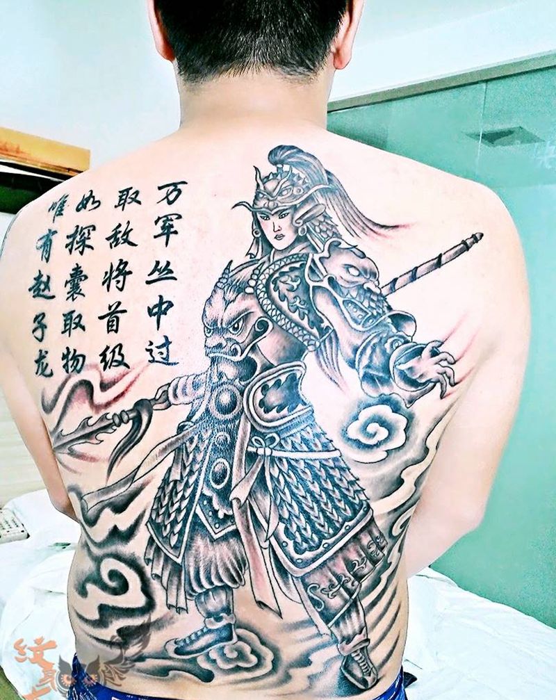 黑灰满背纹身图案