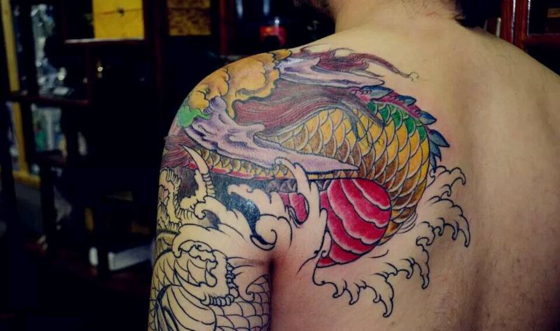 当前位置: 首页 >江苏省苏州市纹身店-昆山木鱼堂纹身工作室纹身图案>花臂龙纹身图片