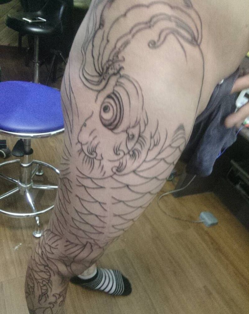 当前位置: 首页 >江苏省苏州市纹身店-昆山木鱼堂纹身工作室纹身图案>包腿大鱼。纹身图片