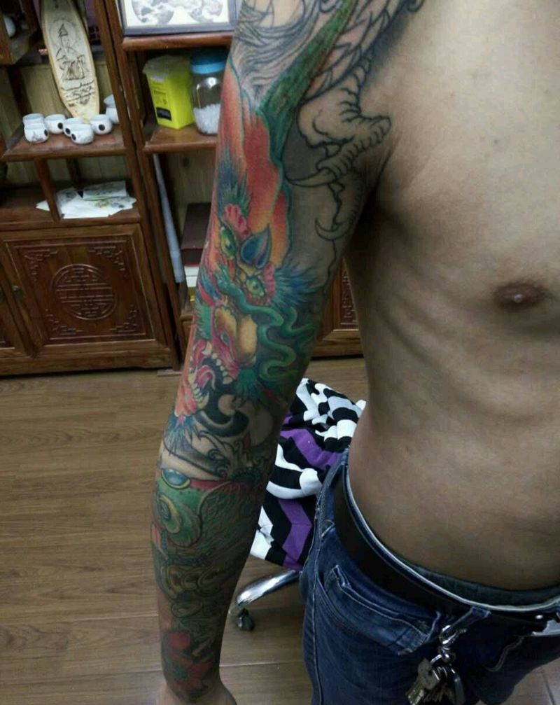 当前位置: 首页 >江苏省苏州市纹身店-昆山木鱼堂纹身工作室纹身图案>花臂龙。纹身图片