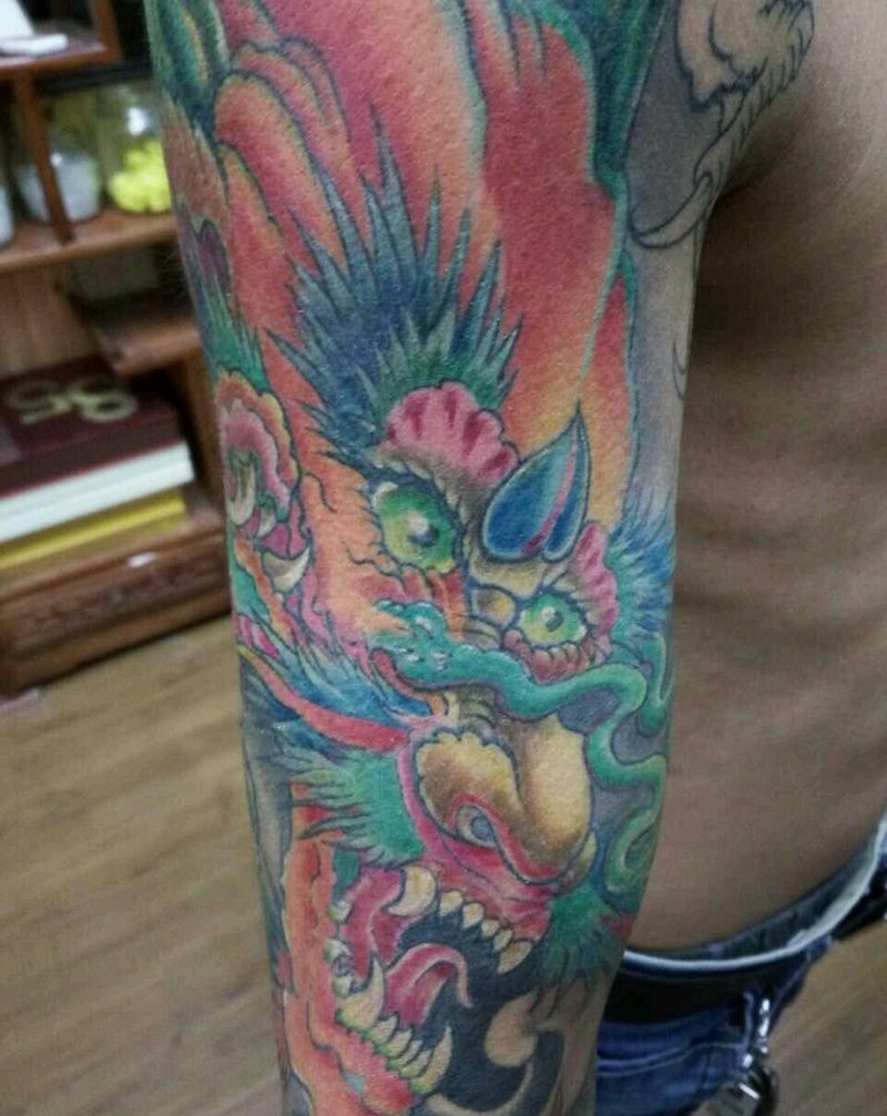 当前位置: 首页 >江苏省苏州市纹身店-昆山木鱼堂纹身工作室纹身图案>花臂龙。纹身图片