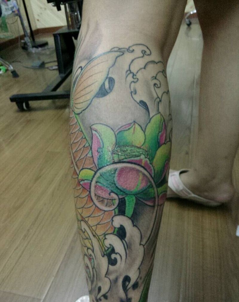 • T网红王老大花腿龙纹身图片_腿部新传统纹身图案