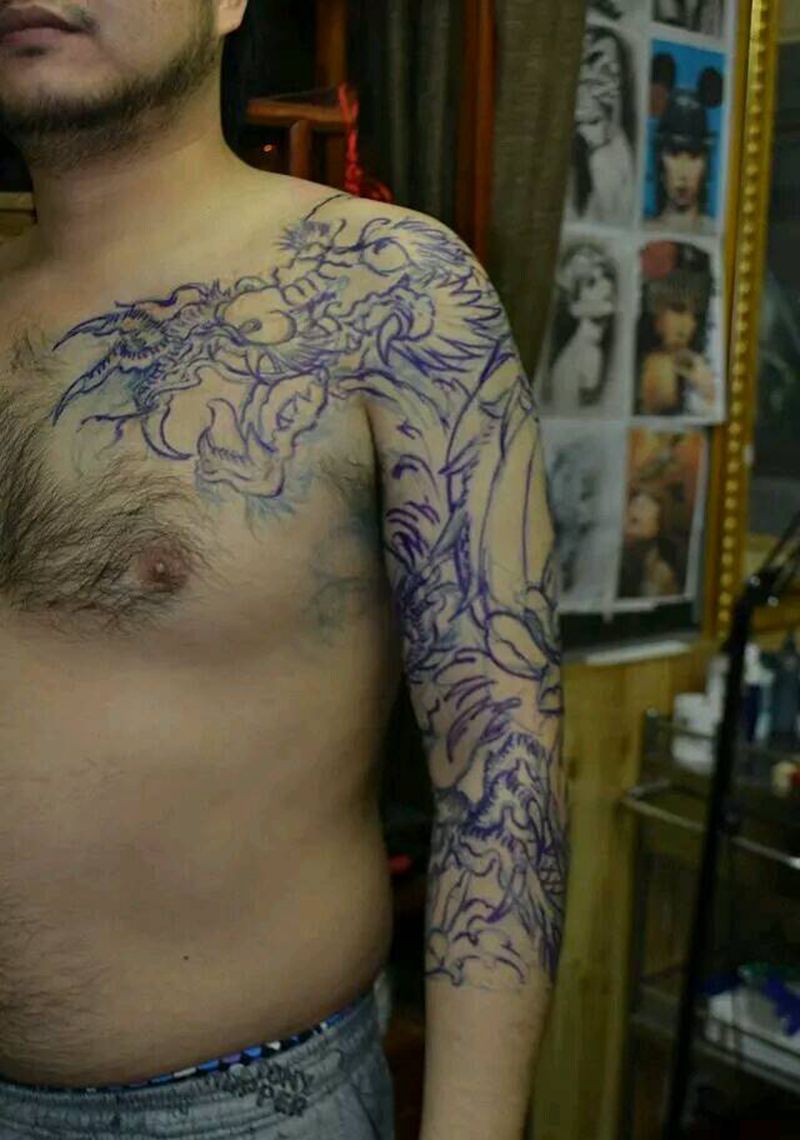 当前位置: 首页 >江苏省苏州市纹身店-昆山木鱼堂纹身工作室纹身图案>花臂金龙。纹身图片