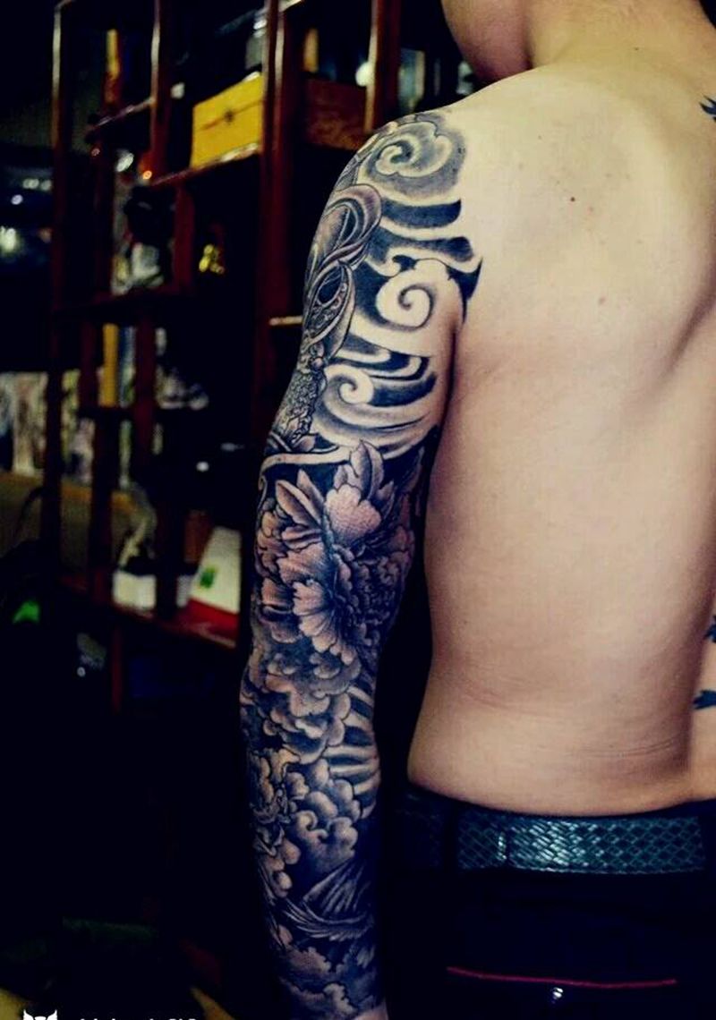 当前位置: 首页 >江苏省苏州市纹身店-昆山木鱼堂纹身工作室纹身图案>黑白花臂纹身图片_肩部手臂传统人物纹身图案