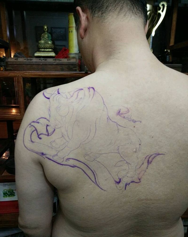 当前位置: 首页 >江苏省苏州市纹身店-昆山木鱼堂纹身工作室纹身图案>金牛纳福纹身图片