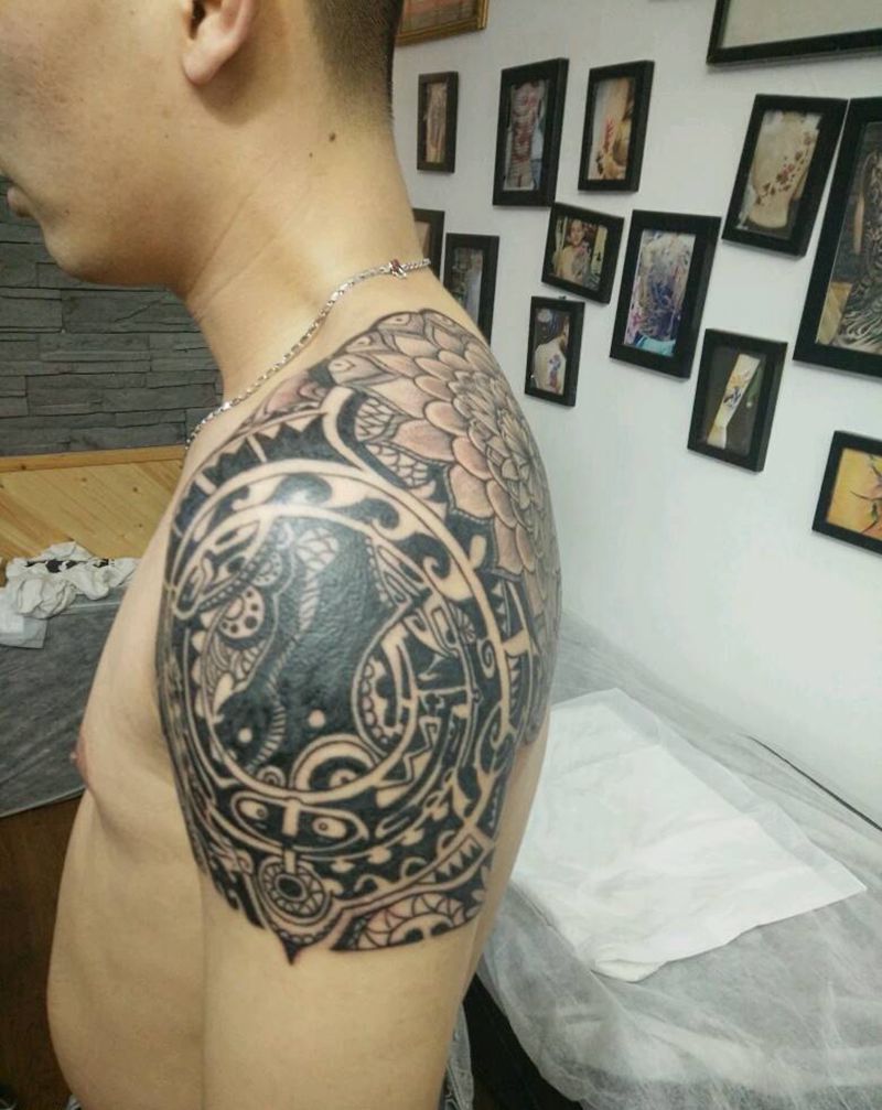 • 纹身吧推荐的披肩图腾半胛纹身图案作品展示