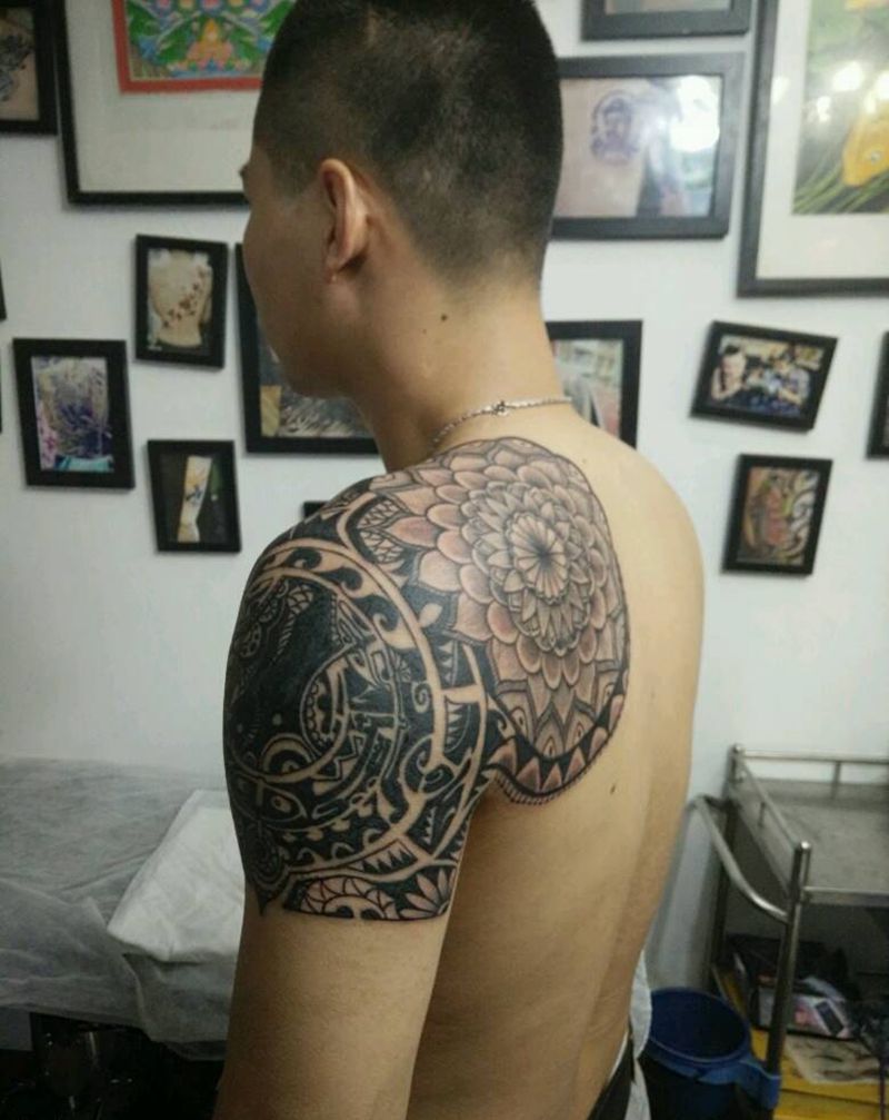 • 纹身吧推荐的披肩图腾半胛纹身图案作品展示