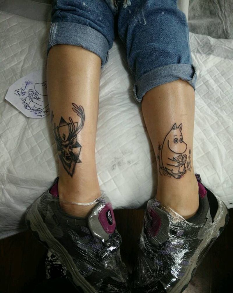 • T网红王老大花腿龙纹身图片_腿部新传统纹身图案