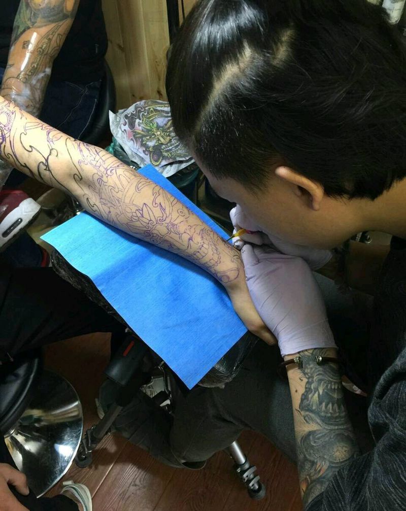 当前位置: 首页 >江苏省苏州市纹身店-昆山木鱼堂纹身工作室纹身图案>花臂线条纹身图片