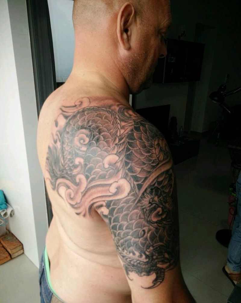 当前位置: 首页 >江苏省苏州市纹身店-昆山木鱼堂纹身工作室纹身图案>过肩龙,纹身图片