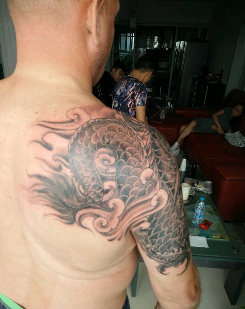当前位置: 首页 >江苏省苏州市纹身店-昆山木鱼堂纹身工作室纹身图案>过肩龙,纹身图片