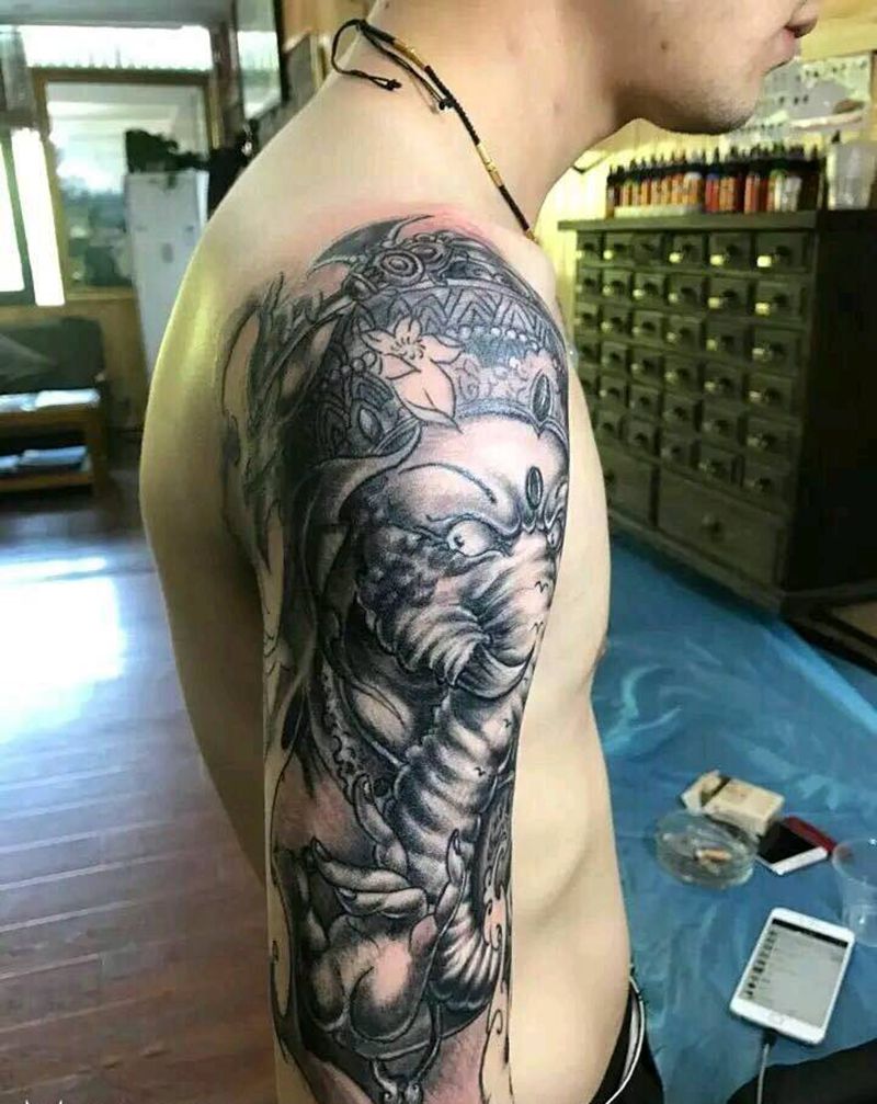 当前位置: 首页 >江苏省苏州市纹身店-昆山木鱼堂纹身工作室纹身图案>象神纹身图片