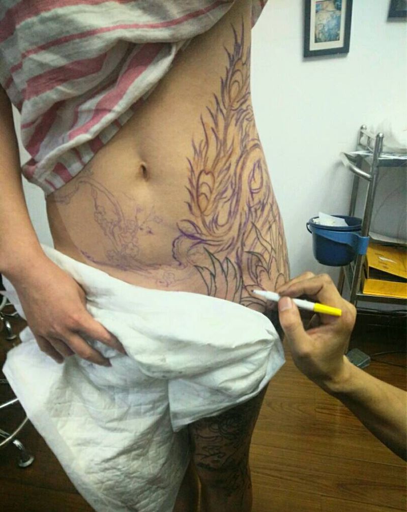 当前位置: 首页 >江苏省苏州市纹身店-昆山木鱼堂纹身工作室纹身图案>凤凰包腿,等待上色中纹身图片