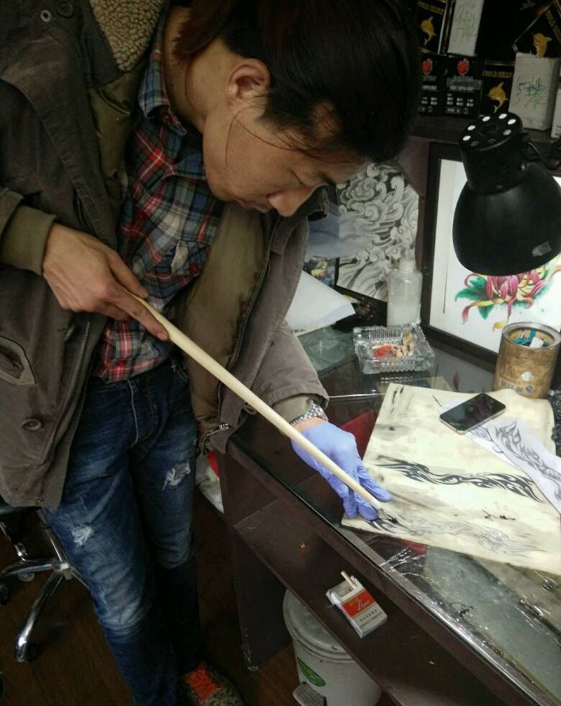 当前位置: 首页 >江苏省苏州市纹身店-昆山木鱼堂纹身工作室纹身图案>学一学泰国纹身师傅手艺。纹身图片