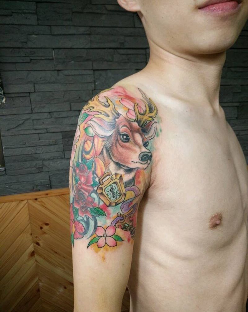 当前位置: 首页 >江苏省苏州市纹身店-昆山木鱼堂纹身工作室纹身图案>彩色小鹿,纹身图片