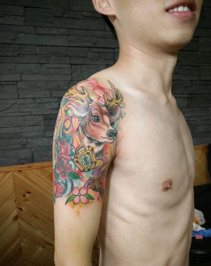 当前位置: 首页 >江苏省苏州市纹身店-昆山木鱼堂纹身工作室纹身图案>彩色小鹿,纹身图片