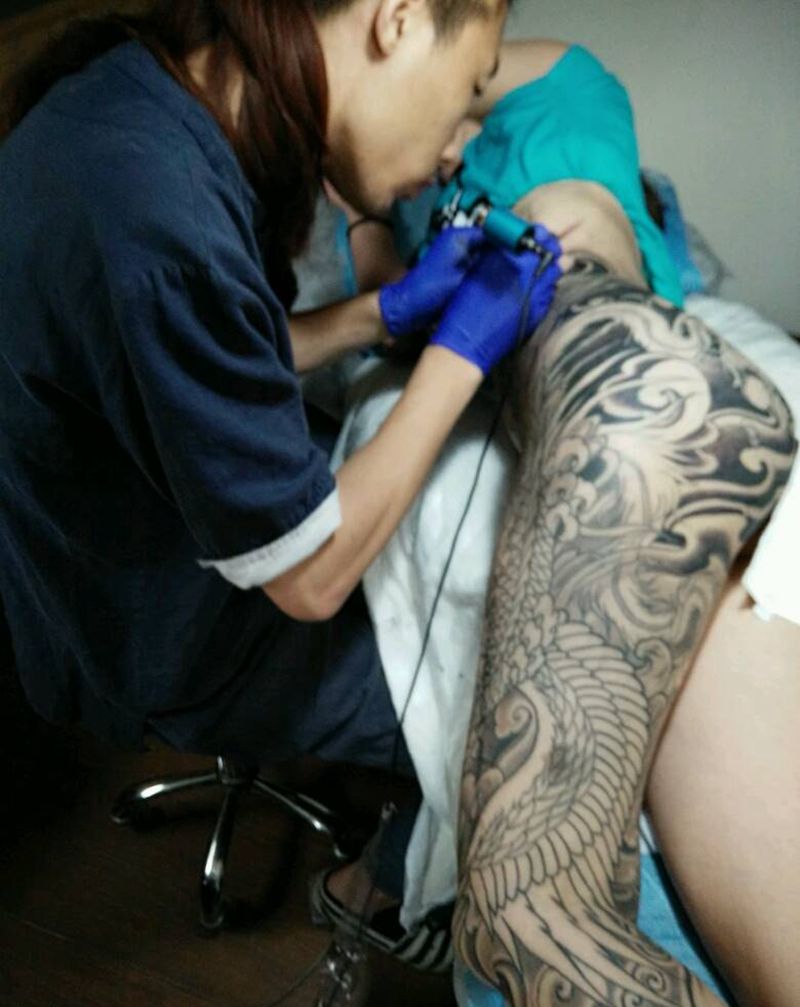 当前位置: 首页 >江苏省苏州市纹身店-昆山木鱼堂纹身工作室纹身图案>凤凰包腿纹身图片