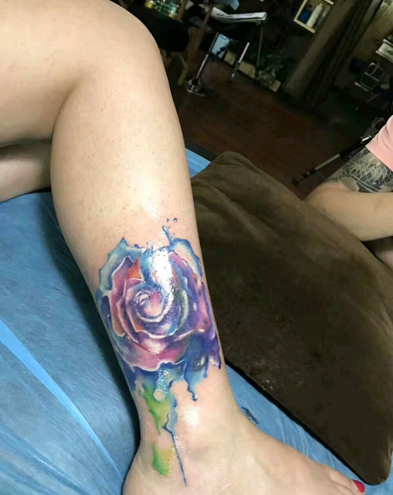 • T网红王老大花腿龙纹身图片_腿部新传统纹身图案