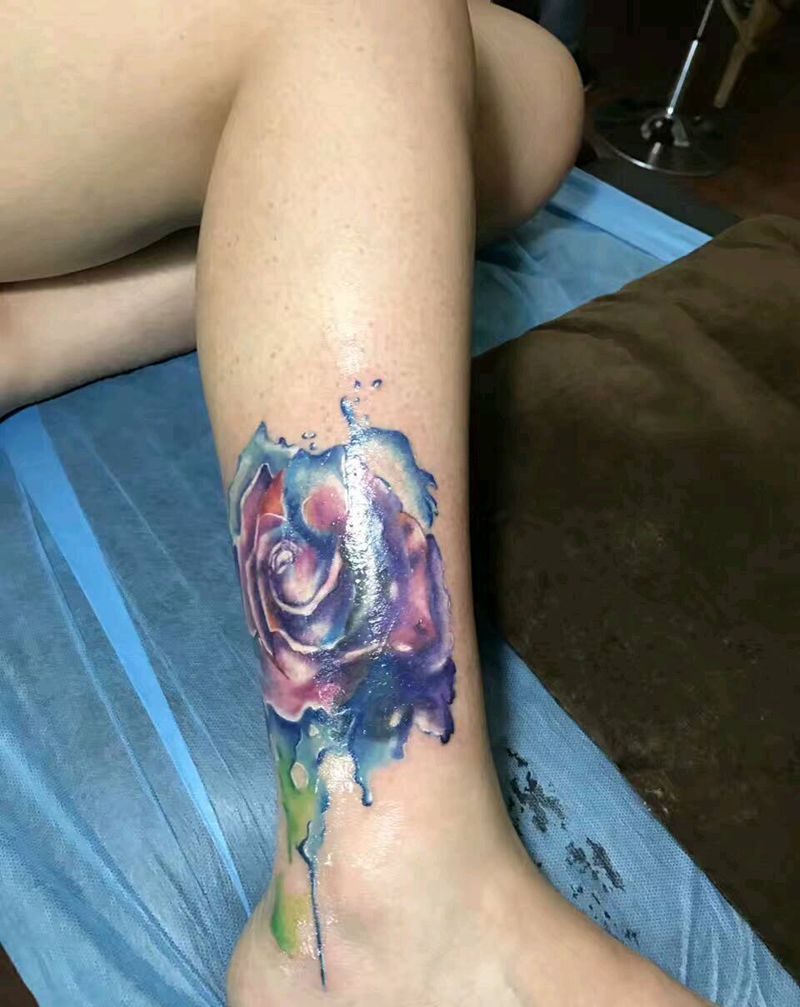 • T网红王老大花腿龙纹身图片_腿部新传统纹身图案