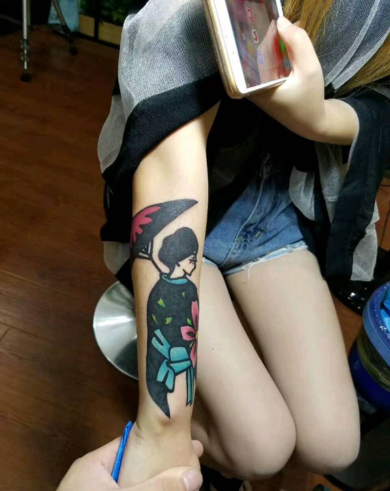 当前位置: 首页 >江苏省苏州市纹身店-昆山木鱼堂纹身工作室纹身图案>小臂日本艺姬纹身图片