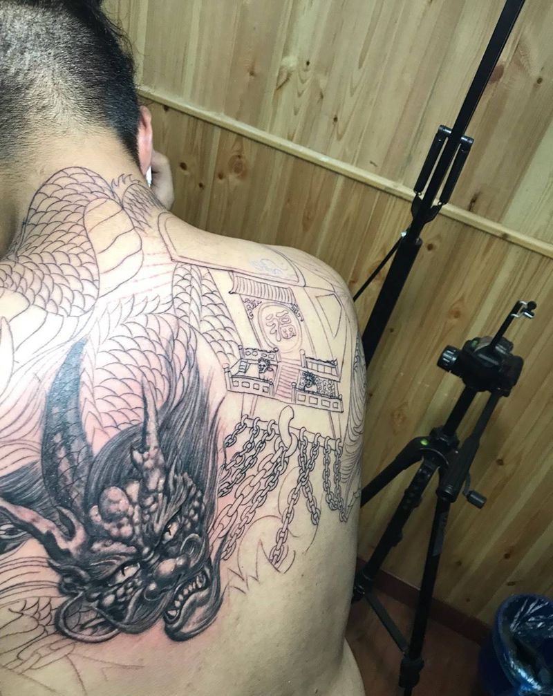 当前位置: 首页 >江苏省苏州市纹身店-昆山木鱼堂纹身工作室纹身图案>九龙拉棺纹身图片