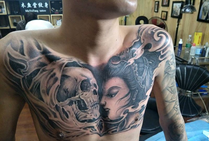 当前位置: 首页 >江苏省苏州市纹身店-昆山木鱼堂纹身工作室纹身图案>花胸纹身图片