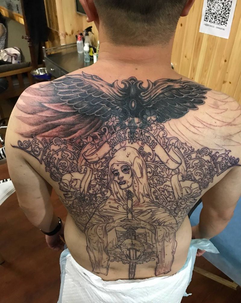 黑灰满背纹身图案